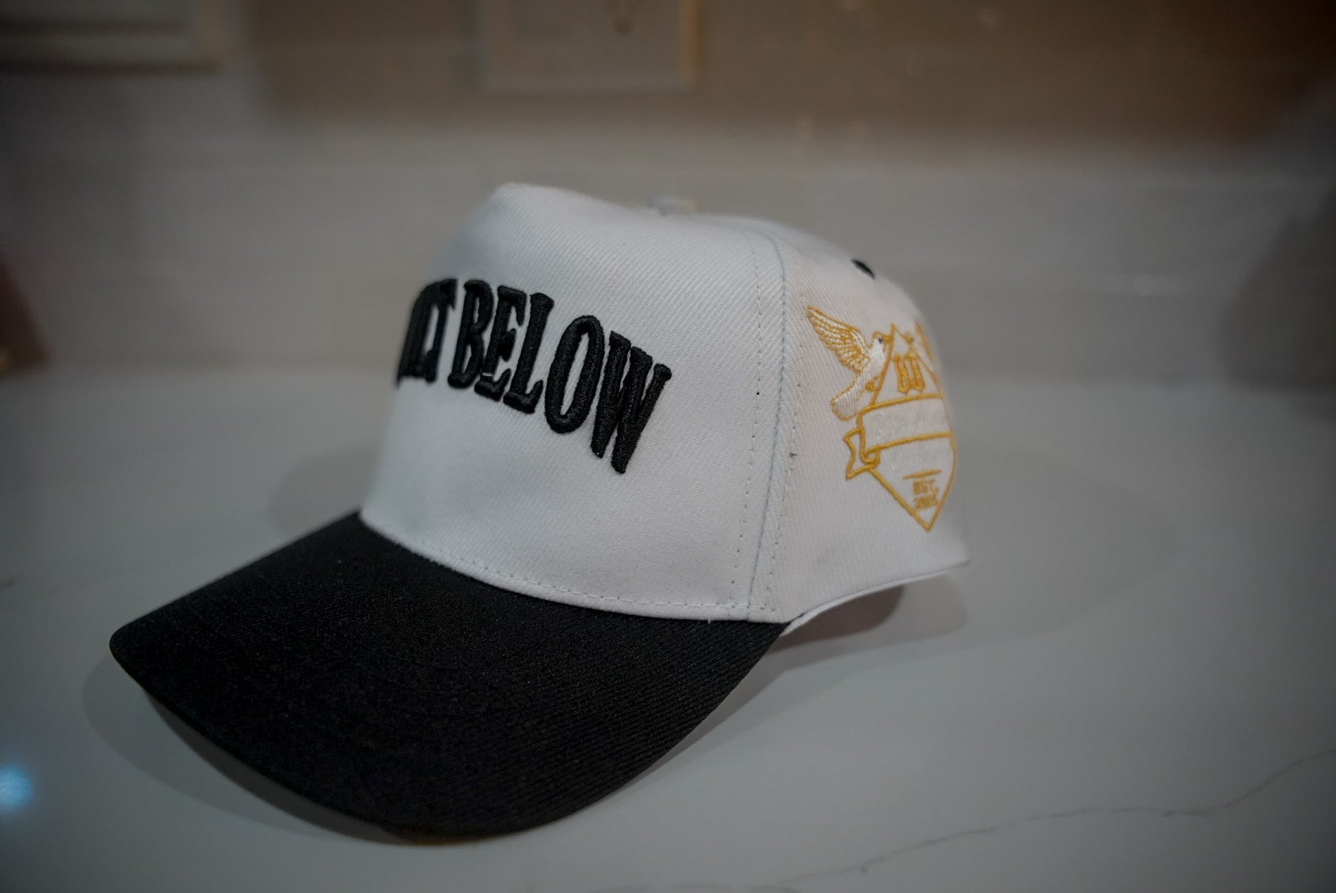 The Frostline Edition Cap delivers a crisp white-and-black contrast with premium Built Below embroidery. Finished with our Rise Above Ordinary side patch, this snapback stands out with a clean, sharp look built for the gym, daily wear, and everything in between.